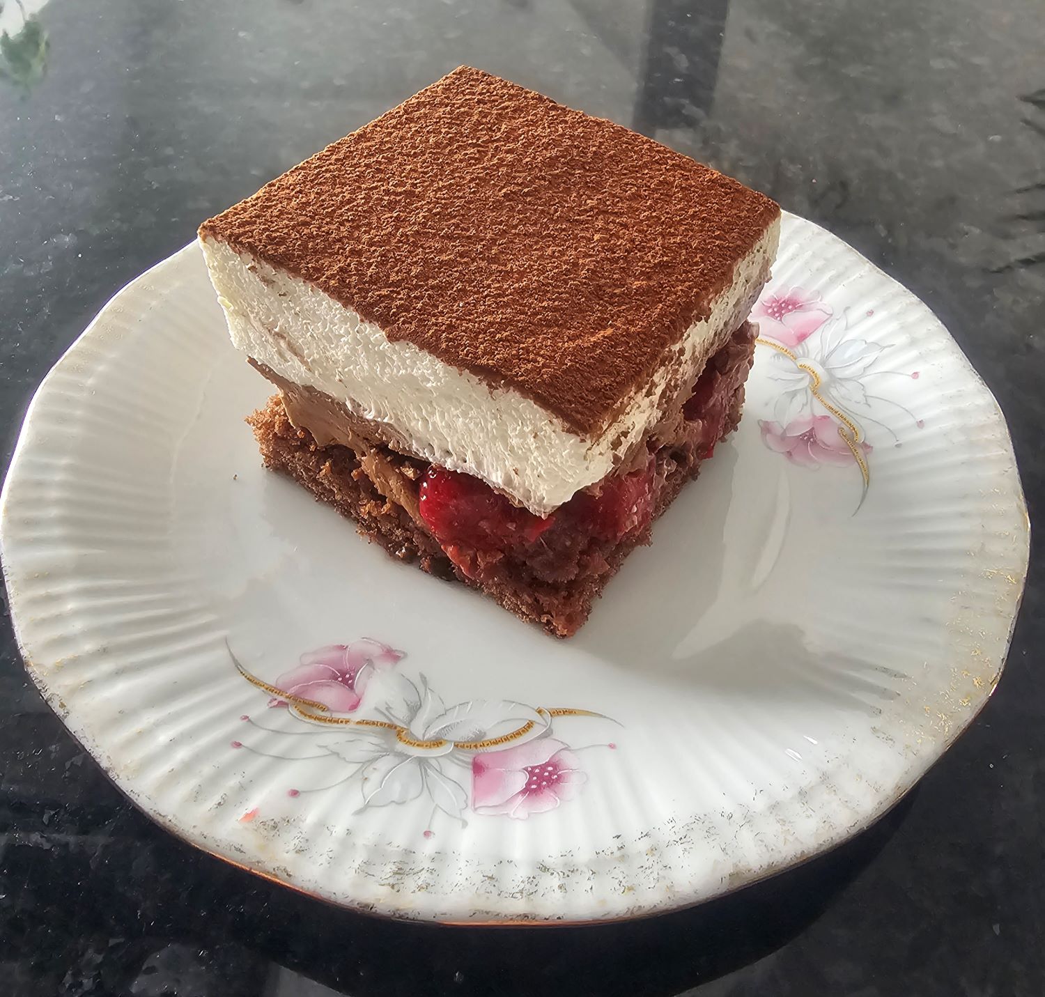 | Ingridenser | Ägg, Bakpulver, florsocker, frukt t.ex. jordgubbar, Gelatin, Kakao, körsbär, Nutella, Potatismjöl, Smör, socker, Vatten, Vetemjöl, vispgrädde |